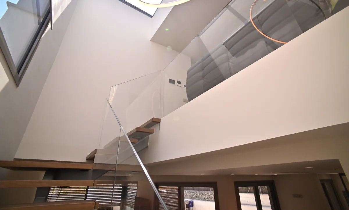 - Barana completament de vidre, sense perfils, per mantenir la continuïtat visual i amplificar la llum natural.