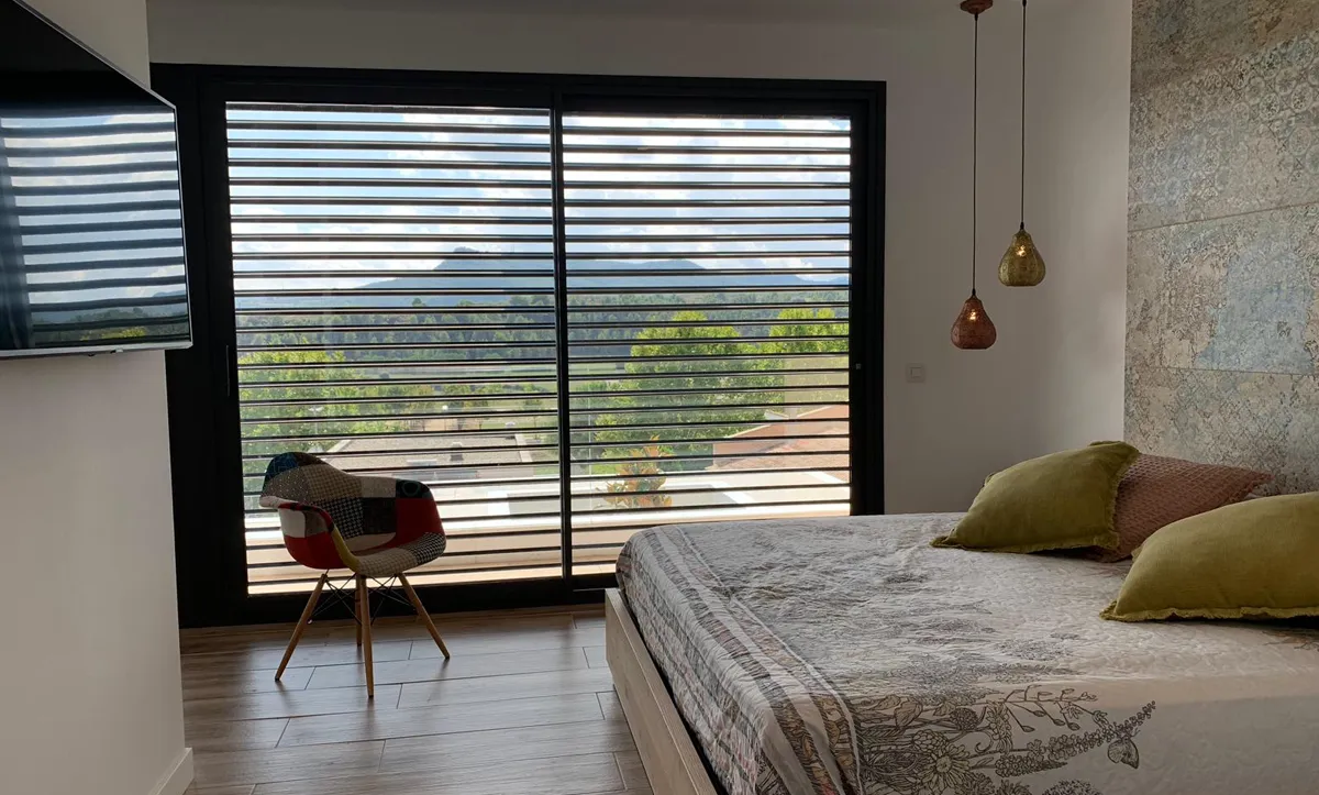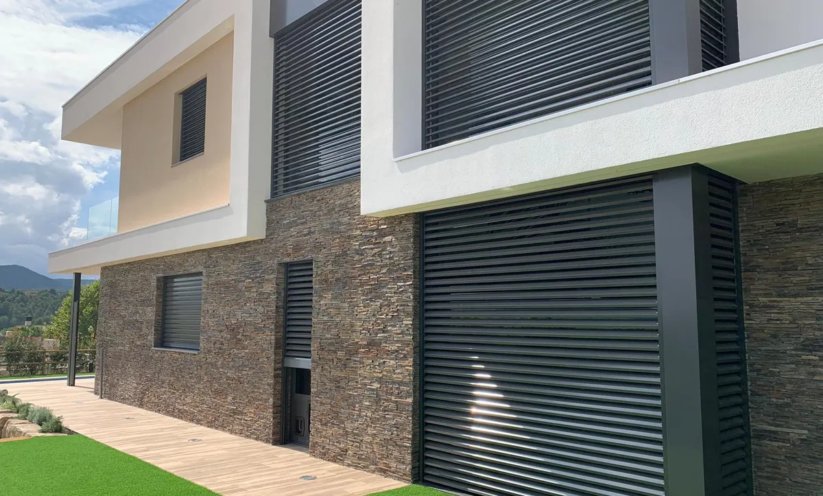 Un dels elements destacats del projecte són les persianes d’alumini biselades, plegables i amb motor integrat, que ofereixen: