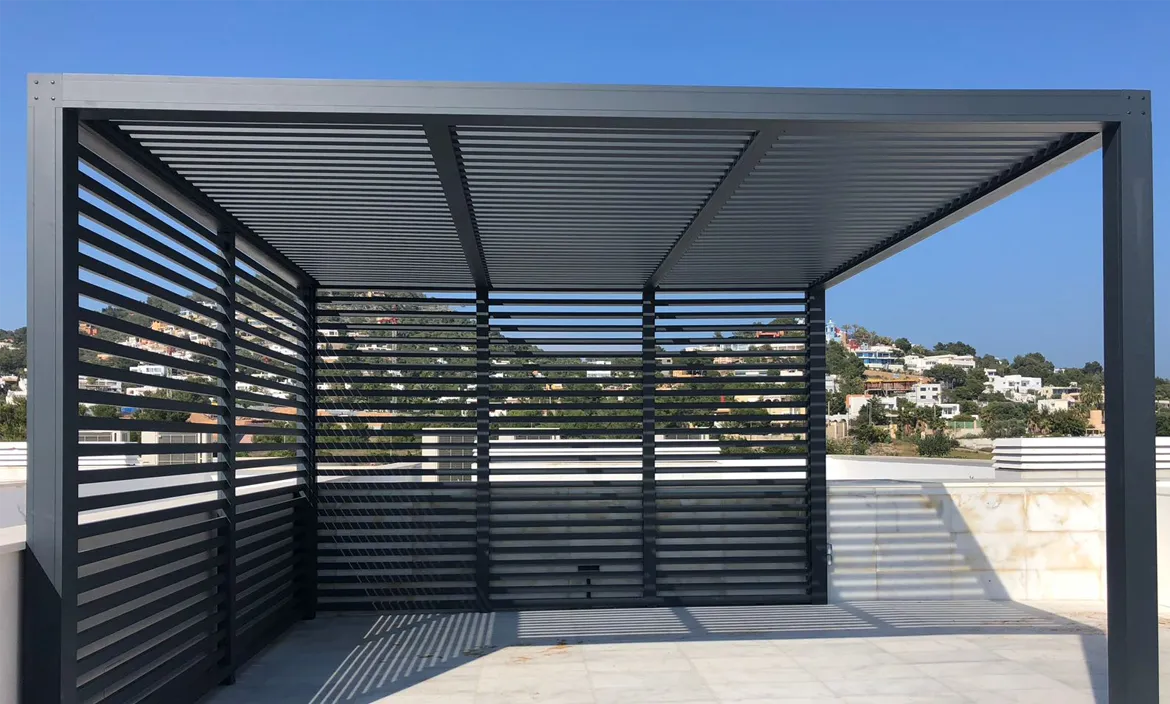 - Pèrgoles bioclimàtiques: Amb lames orientables que regulen la llum solar i la ventilació natural. Perfectes per crear espais exteriors confortables tot l’any.